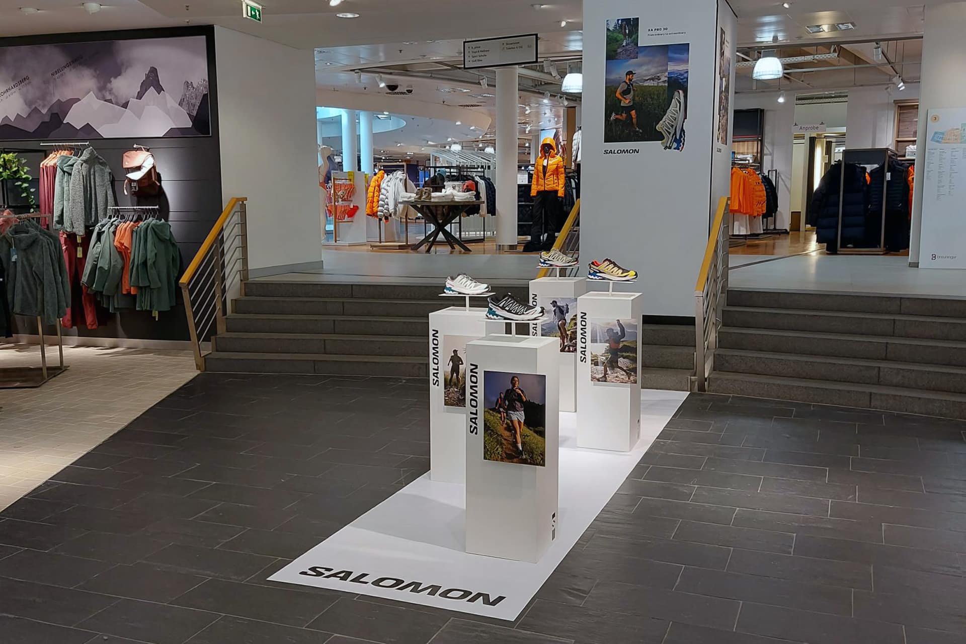 Umsetzung Pop-Up-Fläche für Salomon XA Pro am POS bei Breuninger Stuttgart.